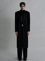 The long-length cut and cinched waist design preserve the sharp, polished presence of a blazer while defining a refined silhouette through the tailored waistline.