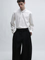 This is a white minimalist spread-collar relaxed-fit shirt, crafted from a structured yet skin-friendly fabric.
