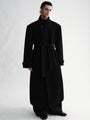 The fabric is thick woolen, with a soft yet structured texture, strong warmth retention, and the black color exudes a high-end matte atmosphere.