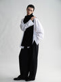 As a layering piece, it can either enhance the deconstructed vibe of an outfit through a half-draped styling, or be adjusted to function as a minimalist turtleneck accent,making it the perfect finishing touch to elevate any look.